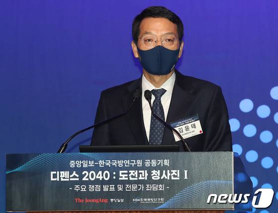 (서울=뉴스1) 김진환 기자 = 김윤태 한국국방연구원 원장이 12일 오전 서울 중구 웨스틴 조선호텔에서 열린 디펜스 2040 컨퍼런스에서 개회사를 하고 있다. 2022.1.12/뉴스1