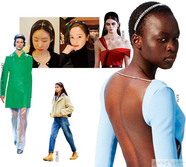 셀린이 헤어밴드 유행의 정점을 찍었다. 하바나 헤어밴드는 블랙핑크 리사, 배우 정호연·차정원, 방송인 김나영 등 옷 잘 입는 셀렙들의 머스트 해브 아이템으로 등극했다. 바람 불 때 날리는 앞머리를 고정하고 싶거나 룩에 사랑스러움을 더하고 싶을 때마다 두루 활용 가능한 아이템이다. 소재에 따라 분위기도 천차만별. 디올의 볼륨 헤어밴드는 우아함을, 살바토레페라가모는 캐주얼 무드를, 알릭스가 선보인 실버 톤의 헤어밴드는 세련된 느낌을 지녔다.