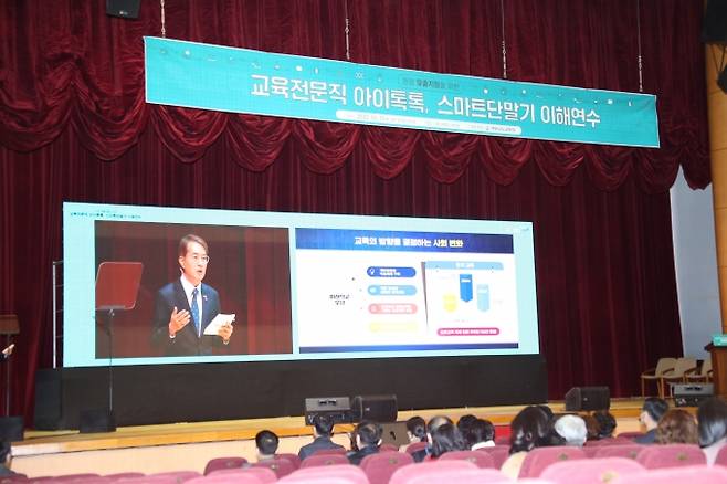 이번 연수는 빅데이터·AI플랫폼 아이톡톡과 전 학생들에게 보급되는 스마트단말기 활용을 통해 미래교육의 핵심인 온·오프 연계교육과 인공지능 활용교육에 대한 교육공동체 역량을 높이기 위해 마련됐다.