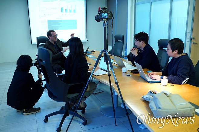| ▲ 국무총리실 성평등국에서 일하고 있는 트릭그비 할그림손(Tryggvi Hallgrimsson)이 취재진에게 아이슬란드 동일임금제도 등에 대해 설명하고 있다. 그는 "동일임금으로 남성도 질 높은 삶을 살 수 있다"고 강조했다. |