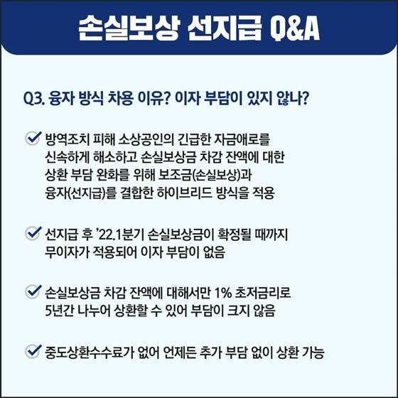 선지급 후 ’22.1분기 손실보상금이 확정될 때까지 무이자가 적용되어 이자 부담 없음