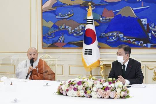 문 대통령은 12일 정오 7대 종단 지도자들을 청와대로 초청해 오찬간담회를 하면서 "오미크론의 고비를 잘 넘길 수 있도록 종교계가 다시 한번 힘을 모아 주시길 부탁드린다"며 이같이 말했다.