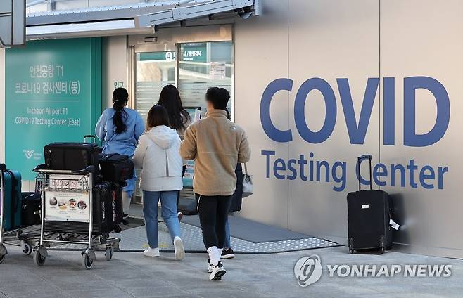 (영종도=연합뉴스) 임헌정 기자 = 신종 코로나바이러스 감염증(코로나19) 해외 유입 신규 확진자가 381명으로 집계 이래 가장 많은 수치를 기록한 12일 영종도 인천국제공항 제1여객터미널 코로나19 검사센터에서 시민들이 검사를 기다리고 있다. 2022.1.12