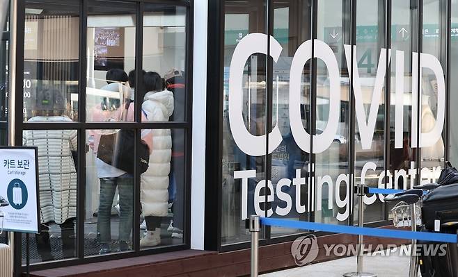 (영종도=연합뉴스) 임헌정 기자 = 신종 코로나바이러스 감염증(코로나19) 해외 유입 신규 확진자가 381명으로 집계 이래 가장 많은 수치를 기록한 12일 영종도 인천국제공항 제1여객터미널 코로나19 검사센터에서 시민들이 검사를 기다리고 있다. 2022.1.12