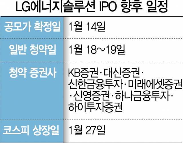 LG엔솔의 기관 수요예측이 대흥행을 기록하면서 14일 발표될 LG엔솔 공모가는 희망 범위(25만 7,000~30만 원) 중 상단인 30만 원으로 사실상 확정됐다.