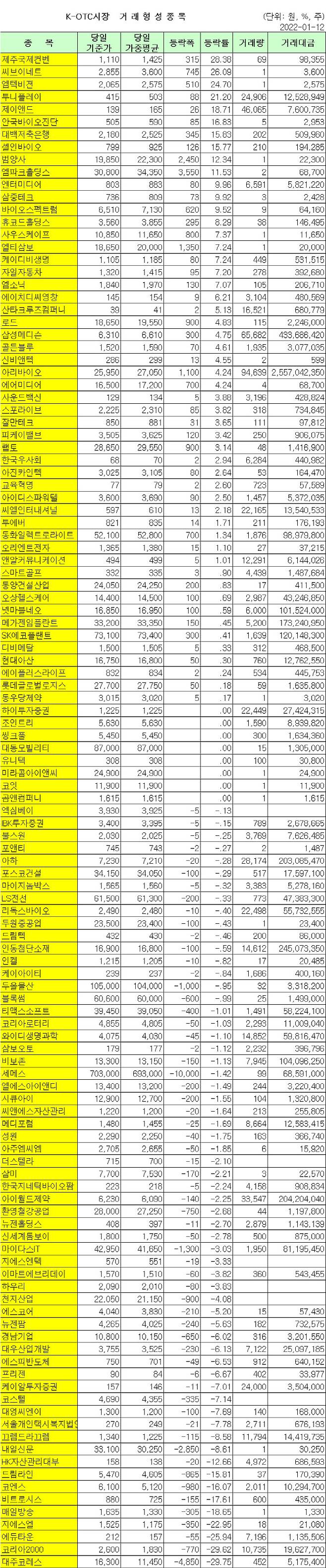[이데일리 유준하 기자] 다음은 1월12일 K-OTC 시장 거래 현황이다.