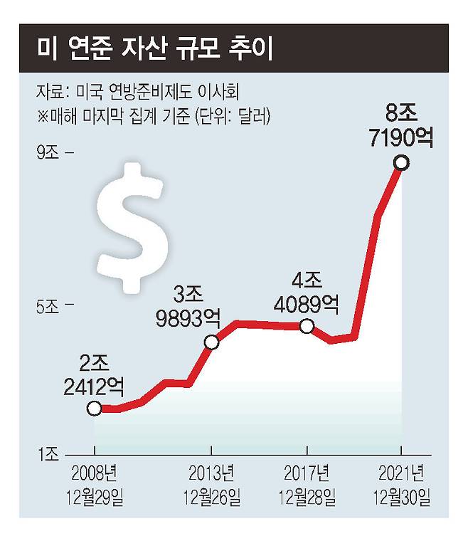 이건 단순 계산인 까닭에 실제 양적 긴축이 어느 규모로 어떤 속도로 이뤄질지는 예단하기 어렵다. 직전 양적긴축도 2년 동안 규모와 속도가 시장 상황에 따라 탄력적으로 시행했다. 앞으로 연준이 내놓을 양적긴축의 구체적인 구상이 중요한 이유다.