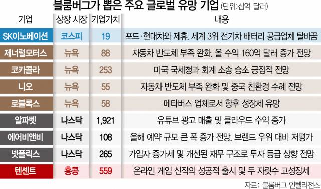 [블룸버그가 뽑은 올 유망 글로벌 '톱50'] 韓선 SK이노 유일..알파벳·텐센트도 '찜'