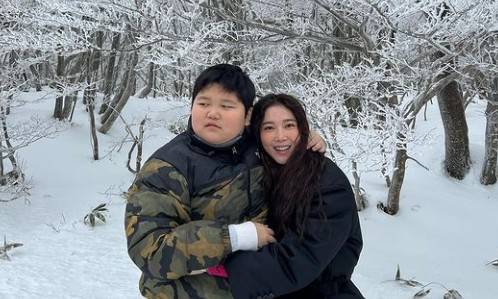 사진 속 오윤아는 눈이 쌓은 산에서 사진을 찍은 모습. 아들을 끌어 안고 미소를 짓고 있는 모습이 지극한 모성애를 뽐냈다.