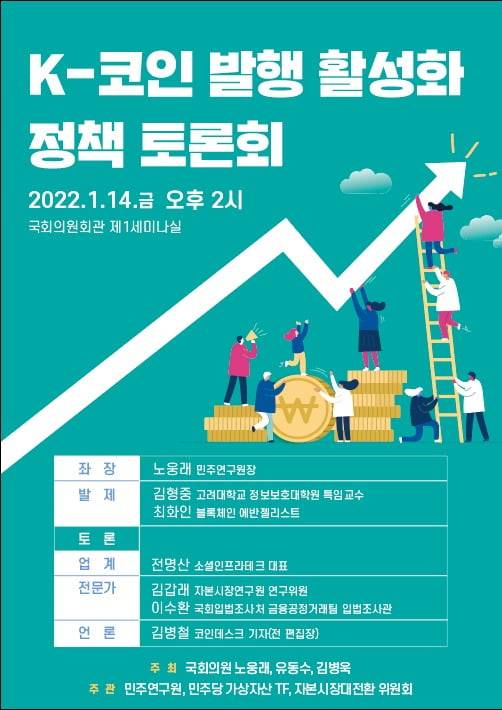 노웅래 더불어민주당 의원이 오는 14일 국회의원회관 제1세미나실에서 'K-코인 활성화방안 정책토론회'를 개최한다고 12일 밝혔다.