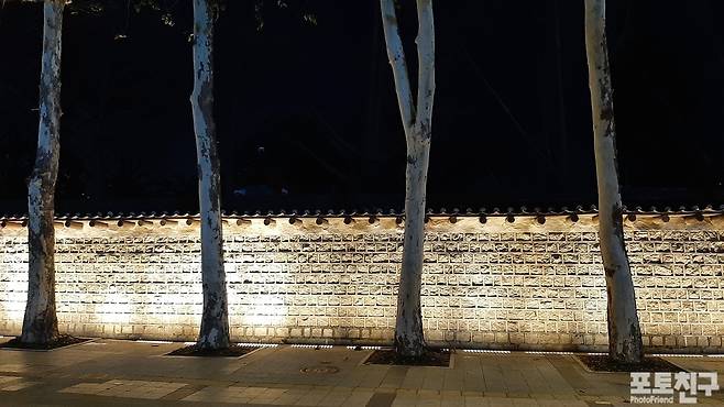 덕수궁 담장 밖 차가운 밤하늘 배경의 겨울나무들.
