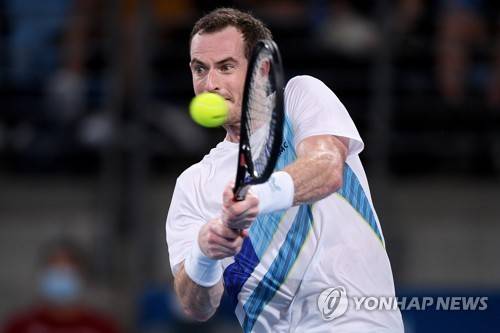 epa09680149 Andy Murray of Britain in action during his Round of 16 match against Nikoloz Basilashvili of Georgia on Day 3 of the Sydney Tennis Classic at Sydney Olympic Park in Sydney, Australia, 12 January 2022. EPA/DAN HIMBRECHTS AUSTRALIA AND NEW ZEALAND OUT