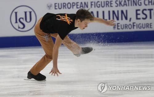 epa09680207 Daniels Kockers of Latvia competes in the Men's Short Program at the ISU European Figure Skating Championships in Tallinn, Estonia, 12 January 2022. EPA/TOMS KALNINS