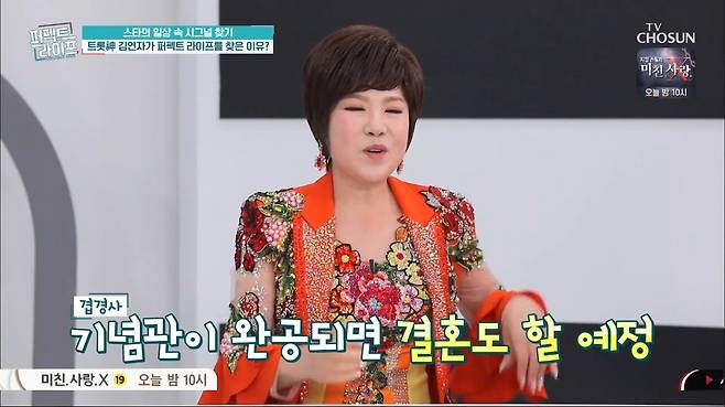 이날 김연자는 예비 남편과의 결혼 계획 및 러브스토리를 공개했다. "노래로 좋은 에너지를 전하고 싶다"는 그는 "조만간 기념관도 세워질 예정이다. 코로나19로 몇 번 연기됐는데, 완공되면 기념관에서 결혼식을 하고 싶다"고 말했다.