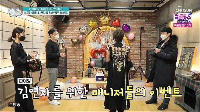 김연자는 매니저들에게 처음 풍선 이벤트를 받아봤다고 좋아하며 "예비 남편은 별로 그런데 신경을 안 쓴다. 프러포즈도 안 받았다"며 "생일선물도 이거 사달라고 요구하는 편"이라고 전했다.