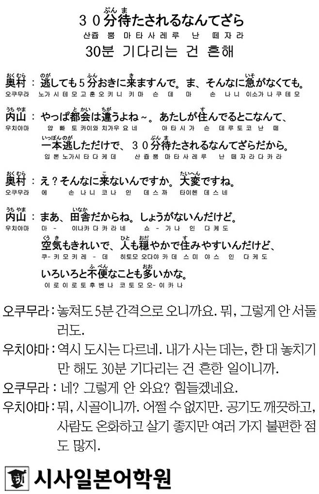[시사일본어학원의 초단기 일본어 회화] 30분 기다리는 건 흔해