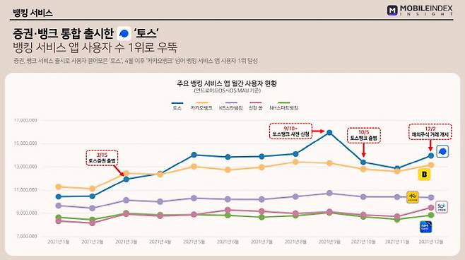토스, 뱅킹 서비스 앱 사용자수 1위로..카카오뱅크 제쳐