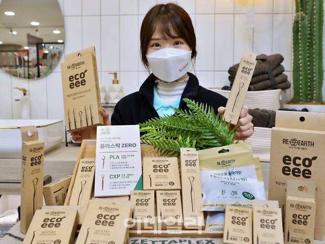리얼스(RE:EARTH)는 롯데쇼핑 통합 ESG 캠페인 브랜드로 옥수수 전분에서 추출한 원료와 나무를 주 원료로 한 무독성 신소재로 제작한 칫솔, 혀클리너, 치간 칫솔이다.