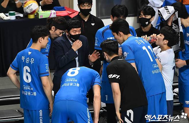 이날 1세트에는 케이타를 앞세운 KB손해보험에 밀렸다. 이에 신 감독은 "첫 세트에는 느슨한 면이 없지 않아 있었다. 가장 중요한 건 블로킹 타이밍이었다. 선수들에게 '강타는 그냥 주라'고 했다. 수비 집중력을 높이는 게 우선이라고 봤기 때문이다"라고 이야기했다.