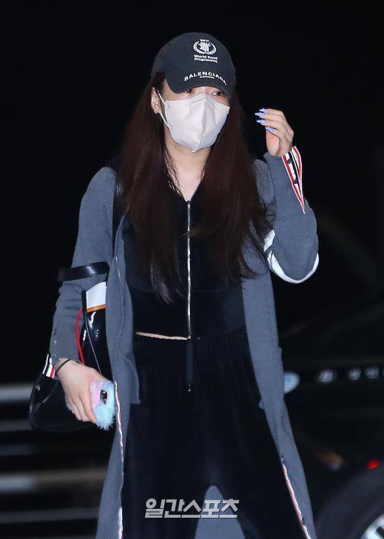 가수 청하가 12일 밤 두바이에서 열리는 두바이엑스포 한국관 한국의 날 케이팝 콘서트에 참석차 인천국제공항 1터미널을 통해 두바이로 출국하고 있다.