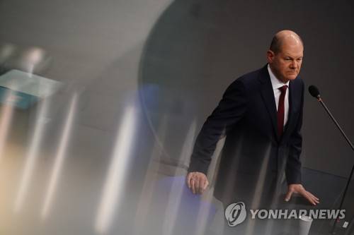 epa09680405 German Chancellor Olaf Scholz looks on during a government consultation at the German parliament ’Bundestag’ in Berlin, Germany, 12 January 2022. On a regular basis, the German Chancellor is giving answers to questions of Members of Parliament at the German Bundestag. This time it is Olaf Scholz’s first scheduled government consultation. EPA/CLEMENS BILAN