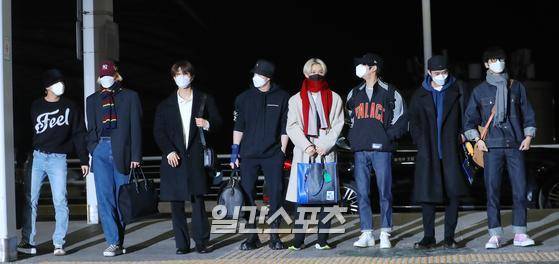그룹 스트레이키즈가 12일 밤 두바이에서 열리는 두바이엑스포 한국관 한국의 날 케이팝 콘서트에 참석차 인천국제공항 1터미널을 통해 두바이로 출국하고 있다.