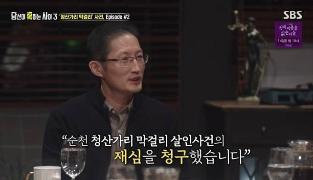 박준영 변호사는 “재심을 청구하고 법원에서 개시 결정을 해야 한다”면서도 재심이 이뤄지리라 확신하며 “검사가 피고인에게 유리한 증거를 숨기고 제출하지 않았다. 조사 과정에서 작성된 조서가 허위로 작성됐다는 사실”을 들었다. (사진=SBS ‘당신이 혹하는 사이 3’ 캡처)