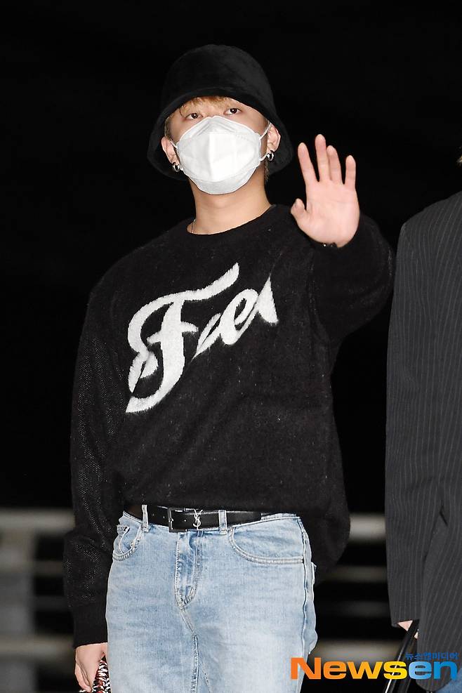 스트레이 키즈(Stray Kids) 멤버 창빈, 현진, 한, 방찬, 필릭스, 승민, 리노, 아이엔이 1월 12일 오후 인천 중구 운서동 인천국제공항 제 1여객터미널을 통해 두바이에서 열리는 두바이 엑스포 한국관 한국의 날 케이팝 콘서트 일정에 참석하기 위해 두바이로 출국하고 있다.