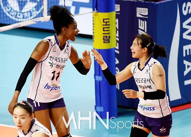 한국도로공사 켈시, 이고은이 경기를 펼치고 있다.
