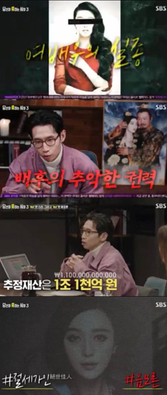 12일 방송된 SBS 교양 프로그램 '당신이 혹하는 사이3'에서는 중국 톱스타 판빙빙을 둘러싼 음모론에 대해 언급했다.