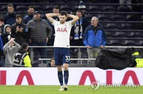 epa09681482 Ben Davies of Tottenham reacts after losing the English Carabao Cup semi final, second leg soccer match between Tottenham Hotspur and Chelsea FC in London, Britain, 12 January 2022. EPA/NEIL HALL EDITORIAL USE ONLY. No use with unauthorized audio, video, data, fixture lists, club/league logos or 'live' services. Online in-match use limited to 120 images, no video emulation. No use in betting, games or single club/league/player publications