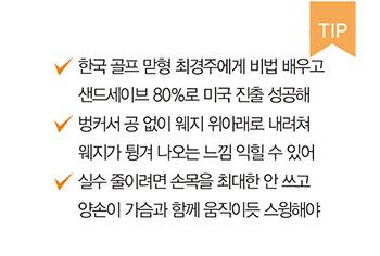 “웨지의 바운스를 이용해도 임팩트와 동시에 스윙이 멈추면 벙커에서 탈출하기 어렵다. 모래에서 공을 빼내기 위해서는 일반적인 샷을 할 때처럼 임팩트 구간 가속이 이뤄져야 한다.”