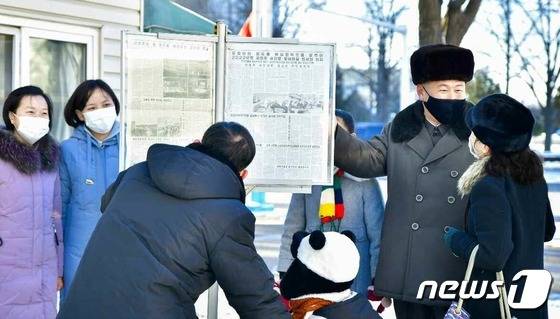 (평양 노동신문=뉴스1) = 북한 노동당 기관지 노동신문은 13일 '연말 전원회의'에서 학생들을 위한 중대조치가 취해졌다는 소식을 듣고 "온 나라가 크나큰 감격에 설렜다"라고 반향을 전했다. 사진은 전원회의 보도가 실린 노동신문을 읽고 있는 중구역.