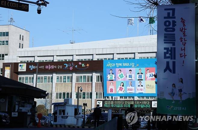 (고양=연합뉴스) 김병만 기자 = 경기 고양시가 13일 인구 100만 명 이상 도시에 부여되는 특례시로 출범했다. 사진은 13일 오전 고양특례시 확정을 축하하는 시청 플래카드.