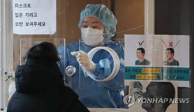 (서울=연합뉴스) 홍해인 기자 = 13일 오전 서울역 광장 중구 코로나19 임시 선별검사소에서 한 시민이 검사를 받고 있다.