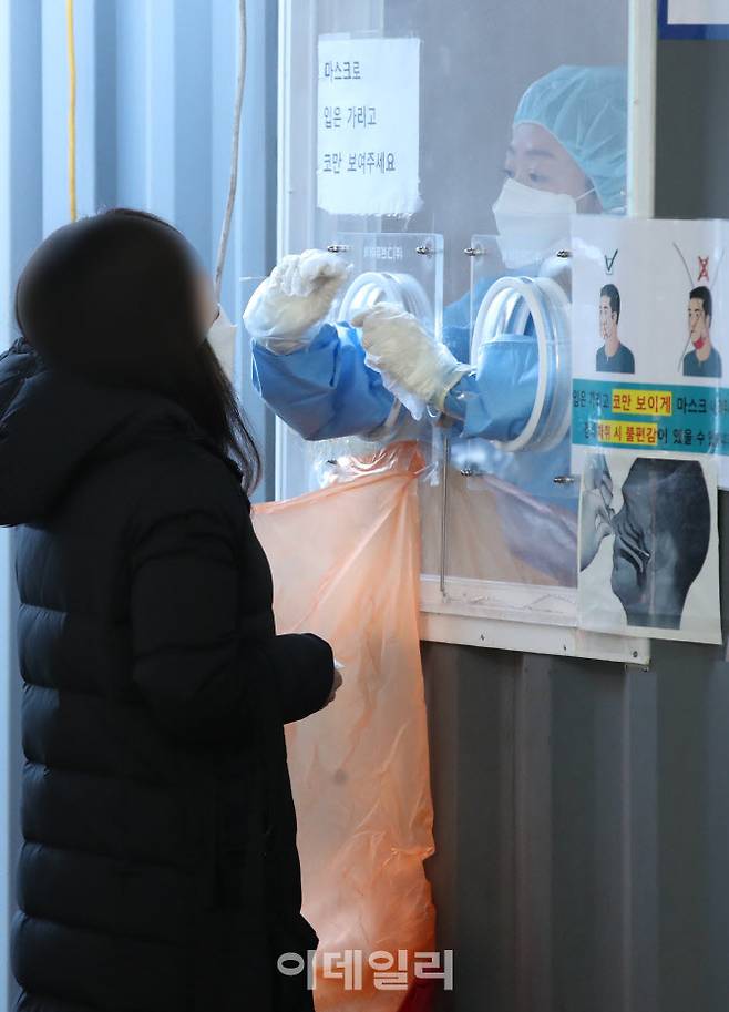 [이데일리 이영훈 기자] 코로나19 신규 확진자가 4167명·위중증 701명을 기록한 13일 서울 중구 서울역광장에 마련된 코로나19 임시선별진료소에서 한 시민이 검사를 받고 있다.