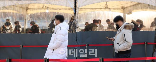 [이데일리 이영훈 기자] 코로나19 신규 확진자가 4167명·위중증 701명을 기록한 13일 서울 중구 서울역광장에 마련된 코로나19 임시선별진료소에서 시민들이 줄을 서고 있다.