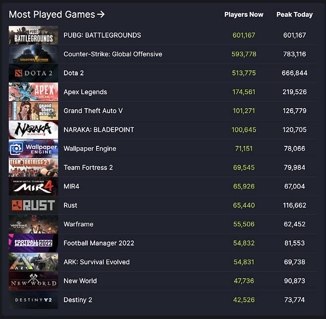 크래프톤은 12일 '배틀그라운드'를 무료로 플레이 할 수 있게 전환했는데, 시작 첫날 글로벌 유통 플랫폼 스팀에서 '가장 플레이어 수가 많은 게임' 실시간 랭킹 1위를 기록했다.