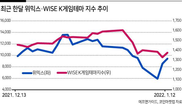 위믹스 생태계에 속한 위메이드, 조이시티를 비롯해 카카오게임즈, 컴투스 등으로 구성된 WISE K게임테마 지수도 반등에 성공했다.