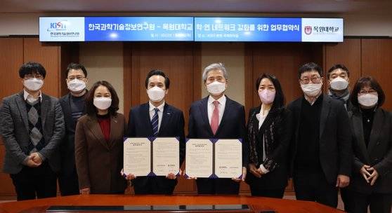 한국과학기술정보연구원(원장 김재수, 이하 KISTI)과 목원대학교(총장 권혁대, 이하 목원대)는 KISTI 대전본원에서 과학기술데이터 인프라 확산과 미래인재양성 상호협력을 위한 업무협약(MOU)을 체결했다고 13일 밝혔다.