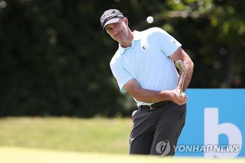 epa09681795 Professional Golfer Geoff Ogilvy plays a shot during the Australian PGA Golf Championships at Royal Queensland Golf Club, in Brisbane, Australia, 13 January 2022. EPA/JONO SEARLE AUSTRALIA AND NEW ZEALAND OUT