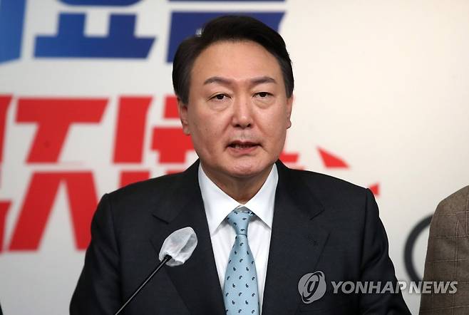 (서울=연합뉴스) 이정훈 기자 = 국민의힘 윤석열 대선 후보가 13일 오후 서울 여의도 중앙당사에서 전기요금 관련 공약을 발표하고 있다. 2022.1.13 [국회사진기자단]