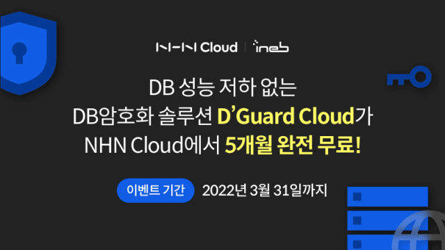 (지디넷코리아=방은주 기자)사이버보안 전문기업 아이넵(대표 추유광)은 자사의 DB암호화 ‘디가드(D’Guard)’를 NHN 클라우드(NHN Cloud)를 통해 클라우드 서비스로 제공한다고 13일 밝혔다. 서비스 시작을 기념해 아이넵은 3월말까지 신청하면 5개월간 무료로 사용할 수 있는 프로모션을 시행한다. 신청은 NHN 클라우드 마켓플레이스에서 하면 된다.