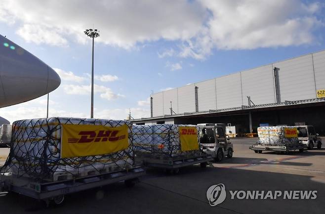 (영종도=연합뉴스) 13일 오후 영종도 인천국제공항 화물터미널에서 이날 처음 국내로 들어온 미국 제약사 화이자사(社)의 코로나19 경구용(먹는) 치료제 '팍스로비드' 2만1천명분이 옮겨지고 있다.