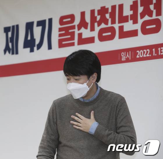 (울산=뉴스1) 윤일지 기자 = 이준석 국민의힘 대표가 13일 오후 울산 남구 국민의힘 울산시당에서 열린 제4기 울산 청년 정치사관학교 특강에 참석하고 있다. 2022.1.13/뉴스1