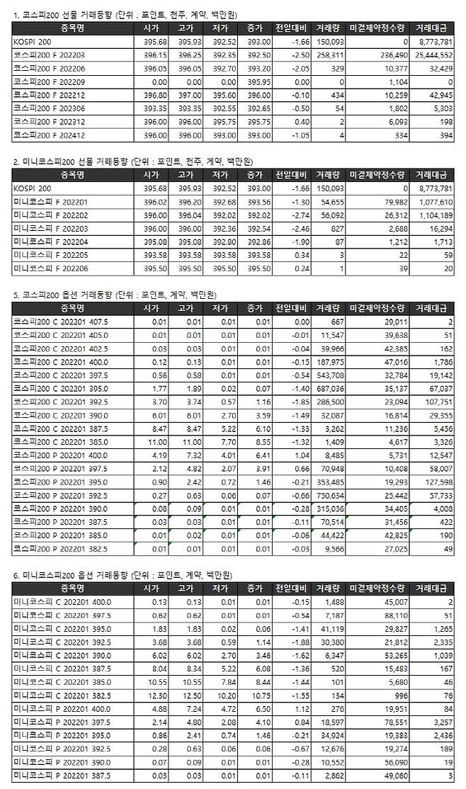 [표]거래소주가지수선물·옵션시세표(1/13)
