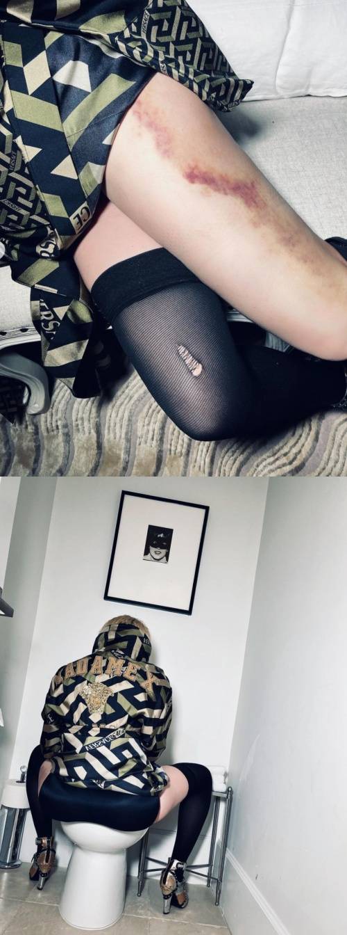 마돈나는 13일(한국시간) 자신의 SNS에 허벅지 전체에 피멍이 든 사진을 게재했다.