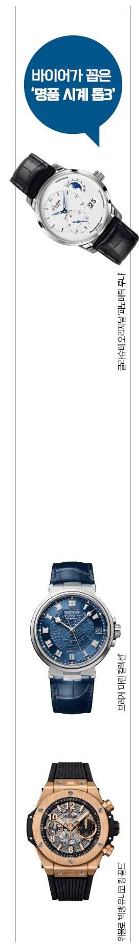 안 바이어가 추천한 마지막 시계 브랜드는 ‘위블로’다. 위블로는 루이비통모에헤네시(LVMH)그룹의 스위스 명품 시계 브랜드다. 1980년 설립돼 다른 브랜드에 비해 역사는 짧지만 세련된 디자인으로 주목받고 있다. 원형 베젤(시계의 테두리)에 박혀 있는 6개의 나사가 위블로의 시그니처 디자인이다. 그는 ‘빅뱅 유니코 킹 골드’와 ‘클래식 퓨전 크로노그래프 티타늄 킹 골드’ 모델을 3040 남성 소비자들에게 추천했다. 안 바이어는 “최근 젊은 남성 소비자 사이에서 유행을 타지 않으면서도 패션에 포인트를 줄 수 있는 ‘남과 다른’ 시계가 특히 인기가 높다”고 말했다.