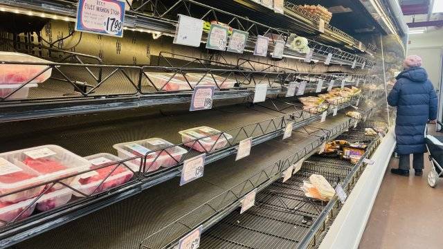 텅 빈 식료품 매대…장보기에 ‘죽을 힘’