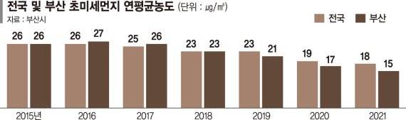 지난해 부산의 초미세먼지 연평균 농도가 관측을 시작한 2015년 이후 가장 낮았던 것으로 나타났다.